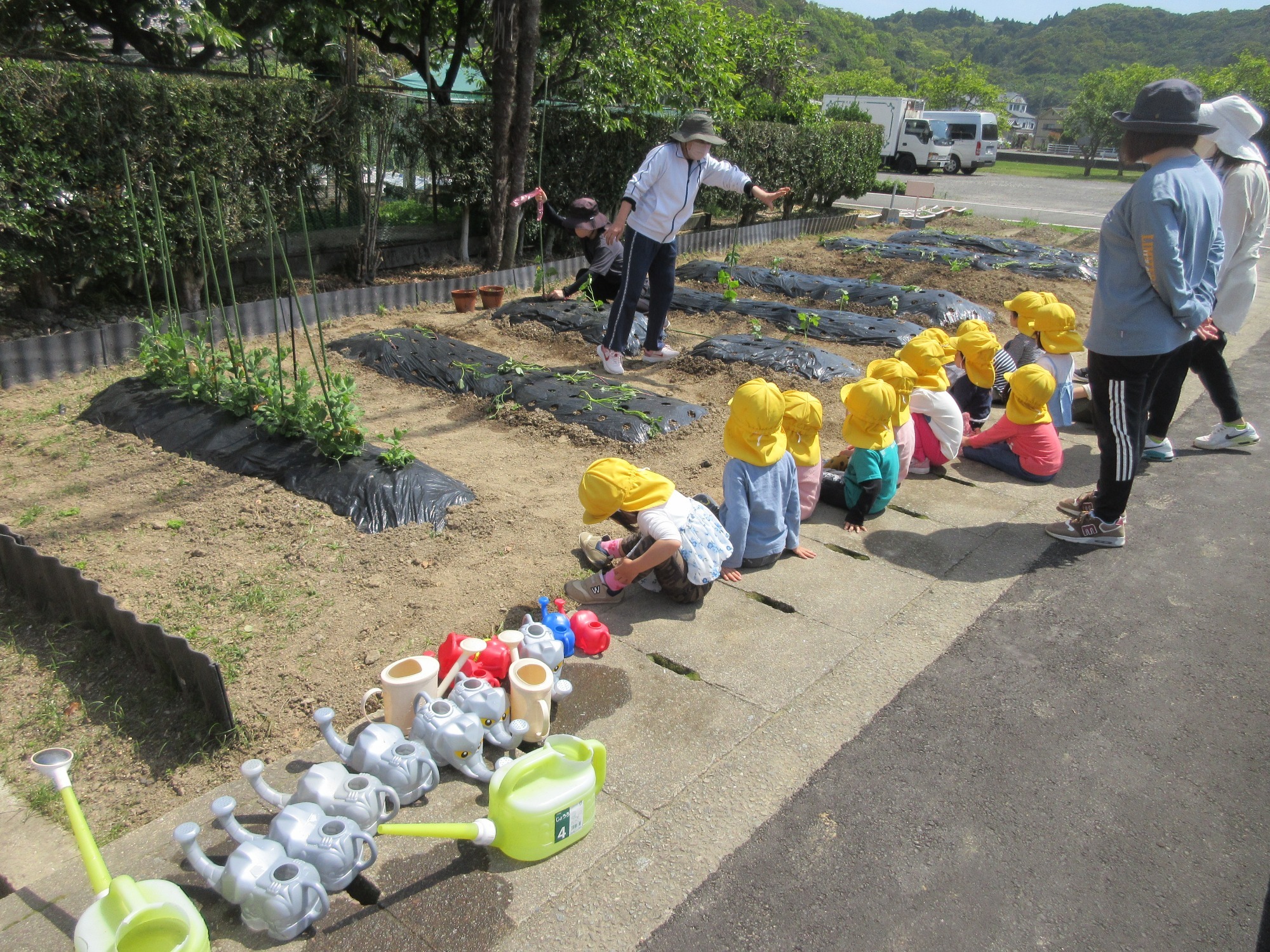 さつまいのも苗植え始まるよ~大きくなるのが楽しみだね!